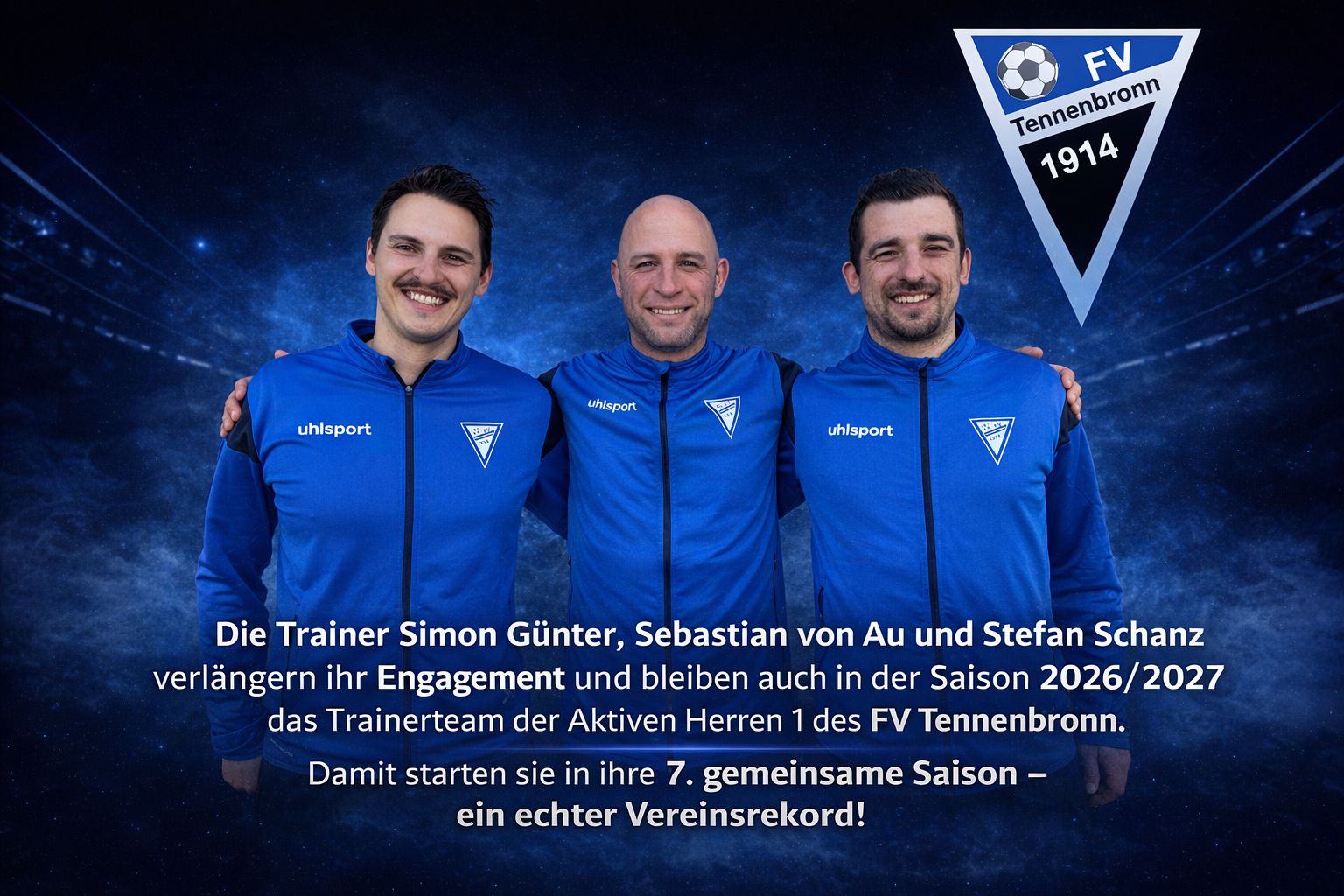 Das bewährte Trainertrio Sebastian von Au, Stefan Schanz und Simon Günter hat seinen Vertrag für die Saison 2026/2027 verlängert. Gemeinsam gehen die drei in ihre siebte Saison beim FVT – ein starkes Zeichen für Kontinuität, Vertrauen und erfolgreiche Zusammenarbeit.