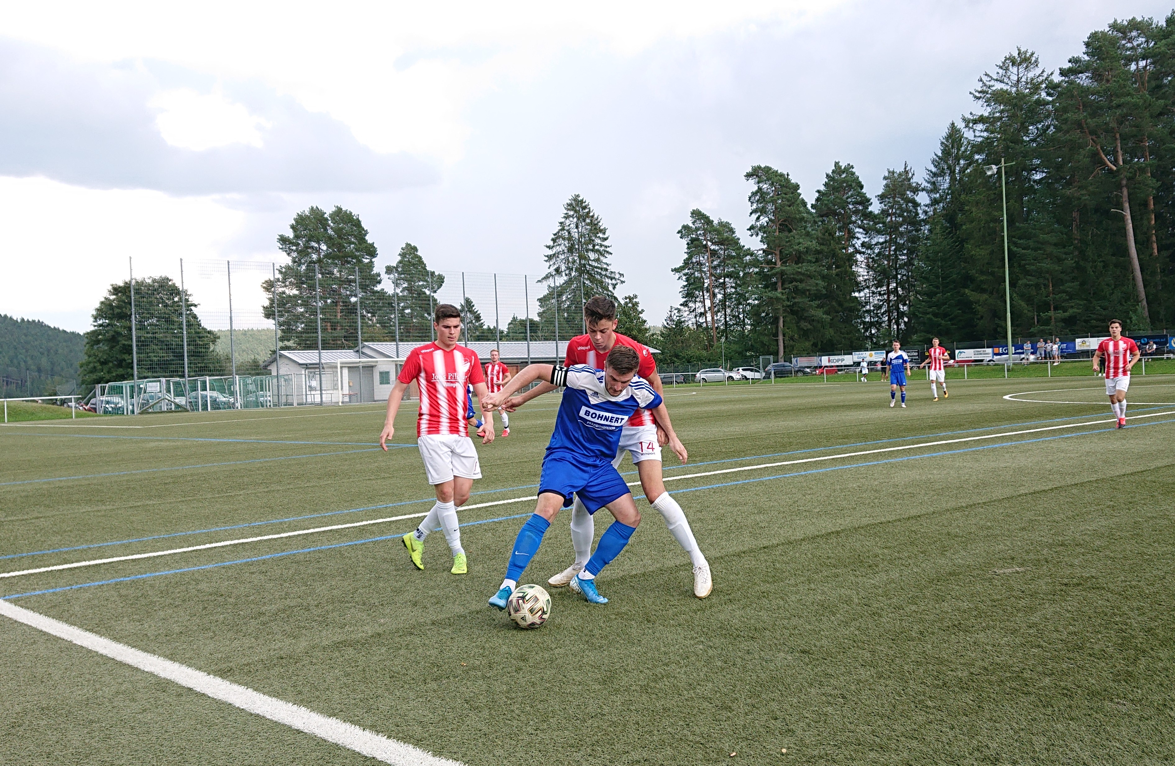 Pfaffenweiler blieb dran und hätte beinahe schon kurz darauf erhöht, doch Daniel Hummel und Pascal Wegner retteten gemeinsam in letzter Not. Nach 21 Minuten war es dann aber soweit und die Gäste erhöhten nach einem Eckball auf 0:2. Das Spiel schien somit schon früh gelaufen für den FVT, doch kurz vor der Pause bäumte sich Tennenbronn nochmals auf. Erst sorgte Luca Schüle für den Anschlusstreffer nach einem Eckball, dann versenkte Justin Stoll einen Foulelfmeter zum 2:2 Pausenstand. Diese Treffer und die Verschnaufpause sorgten in der zweiten Hälfte wieder für Hoffnung und das Spiel war wieder völlig offen.