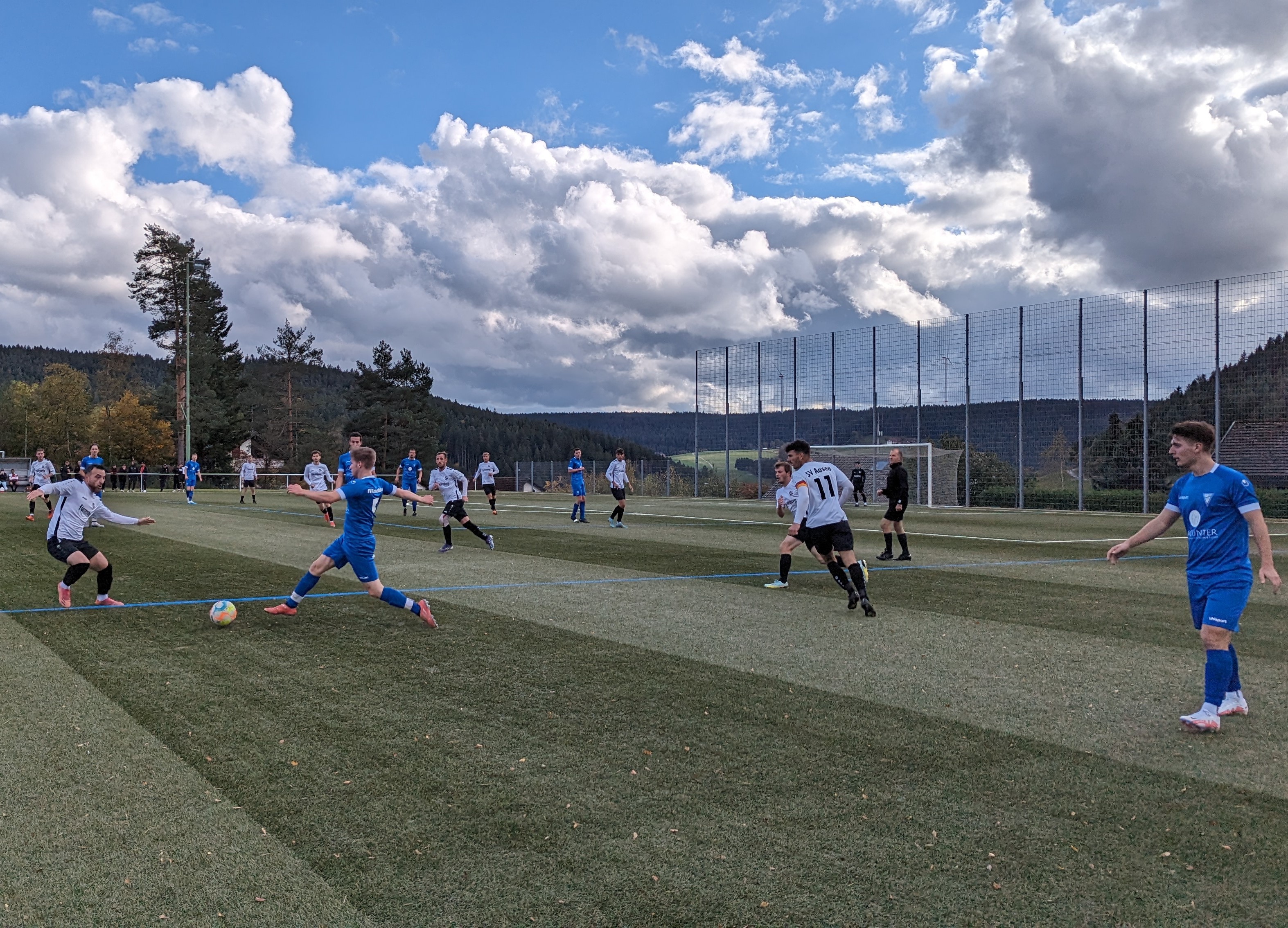 Trotz einiger Änderungen in der Startformation brachte der FVT gleich vom Anpfiff weg das zuletzt erarbeitete Selbstverständnis auf den Platz und dominierte von Beginn an. Schon früh zeichnete sich daher die Führung ab. Die erste gute Chance konnte Marcel Ketterer trotz technisch anspruchsvoller Ballbehandlung noch nicht nutzten, denn sein Heber ging nur auf das Tor. Wenig später war man dann aber doch erfolgreich. Eingeleitet von einem präzisen Zuspiel in die Spitze von Timo Roth, kam Yannik Richter zum Abschluss, verzog aber, da er beim Schuss von hinten gefoult wurde. Der Schiedsrichter zeigte folgerichtig auf den Punkt und Stefan Schanz ließ sich nicht zweimal bitten und versenkte mit Wucht zum 1:0. Nur drei Minuten später stellte Tennenbronn weiter die Weichen auf Sieg. Justin Stoll wechselte mit einem hohen Pass auf die linke Seite, wo Lucas Maier-Juranek Platz hatte. Anstatt den Platz zu nutzen und Richtung Tor zu laufen, entschied er sich aber für die anspruchsvolle, aber dafür umso schönere Lösung. Aus vollem Lauf und mit viel Übersicht ließ er dem Torwart mit seinem Heber keine Chance und der Ball senkte sich zum viel Umjubelten 2:0 ins Netz. Nach dem 2:0 wurden die Großchancen etwas weniger. Tennenbronn war dem nächsten Tor aber jederzeit näher als Aasen, denn hinten Stand man sicher und die Gäste waren oft mehr mit sich selber oder dem Schiedsrichter beschäftigt, als dass sie die Tennenbronner Defensive ernsthaft in Unruhe versetzen konnten.