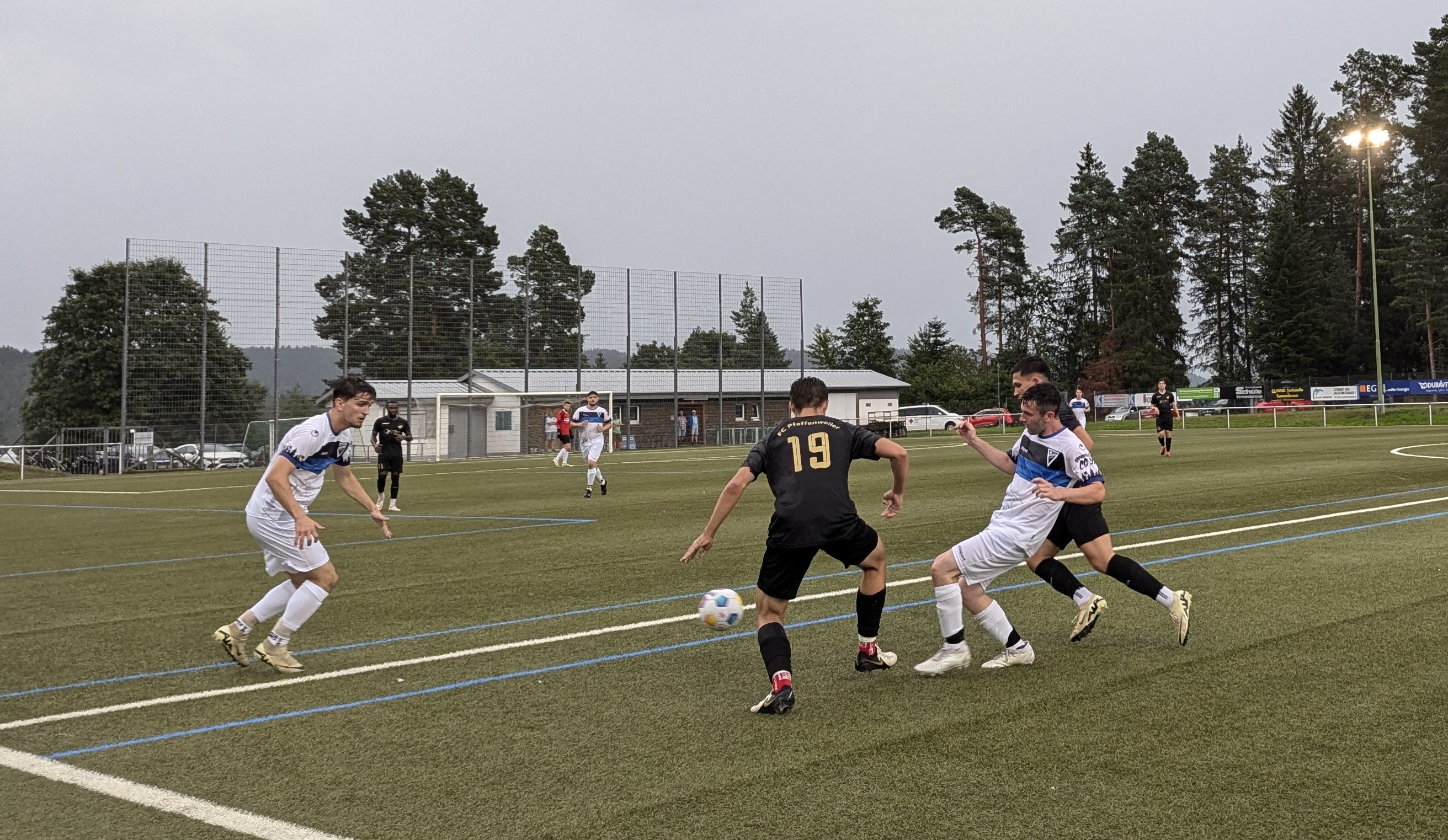 Nach dem Seitenwechsel kam Tennenbronn wieder mit viel Schwung aus der Kabine und riss das Spiel erneut an sich. Immer wieder konnte man leichte Fehler der Gäste in der letzten Abwehrreihe provozieren, kam aber dann nicht entscheidend zum erfolgreichen Abschluss. So auch nach 50 Minuten, als Niclas Reinke sensationell mit einem Lupfer die gesamte Pfaffenweiler Abwehr aushebelte und den eingelaufenen Lucas Maier-Juranek fand. Sein Abschluss verfehlte das Tor aber knapp. Wie schon in der ersten Hälfte überstanden die Gäste die Druckphase und ließen sich nicht verunsichern. Nach 75 Minuten schlugen sie eiskalt zurück und fanden den Abschluss, als Tennenbronn bei mehreren Querpässen der Gäste in aussichtsreicher Position nicht den Fuß dazwischen bekam und der Angreifer am Ende frei zum Schuss ins linke Eck kam. Von diesem erneuten Rückstand erholten sich die Schwarz-Blauen nicht mehr. Das intensive Spiel zeigte seine Wirkung und die Gäste machten es in der Folge besser und ließen kaum mehr was zu. Das 1:3 und das 1:4 in der Schlussphase machten alles klar, ließen das Ergebnis aber deutlicher aussehen, als es der Spielverlauf und die insgesamt gute Leistung des FVT vermuten ließe. Mit Pfaffenweiler gewann am Ende die effektivere Mannschaft. Für den FV Tennenbronn heißt es nun die Abläufe weiter zu verfeinern, ehe am 18.08 der Bezirkspokalwettbewerb gegen Tannheim und am 25.08 die Bezirksliga gegen Geisingen startet.